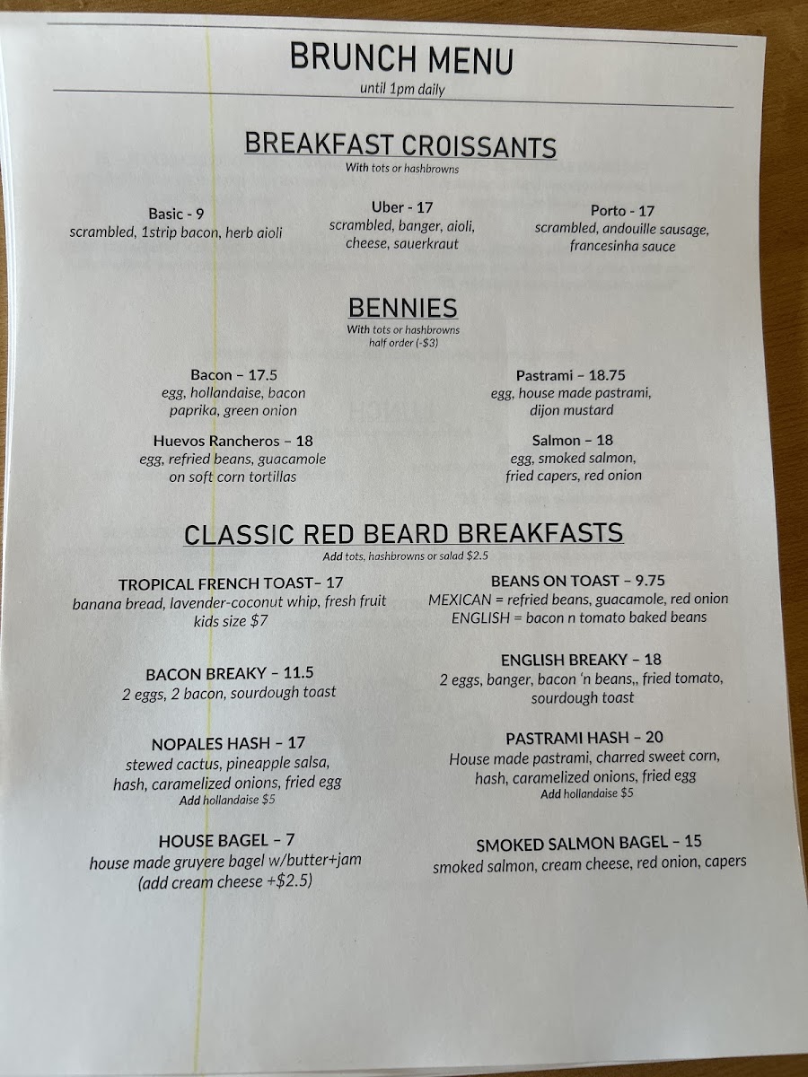 The Red Beard Cafe menu offers a welcoming blend of casual café fare, comforting drinks, and satisfying pub-style plates, all served in a relaxed, nature-inspired setting. Whether you’re stopping by for a morning pick-me-up or settling in for a leisurely lunch, the menu balances familiar favorites with a few creative twists.